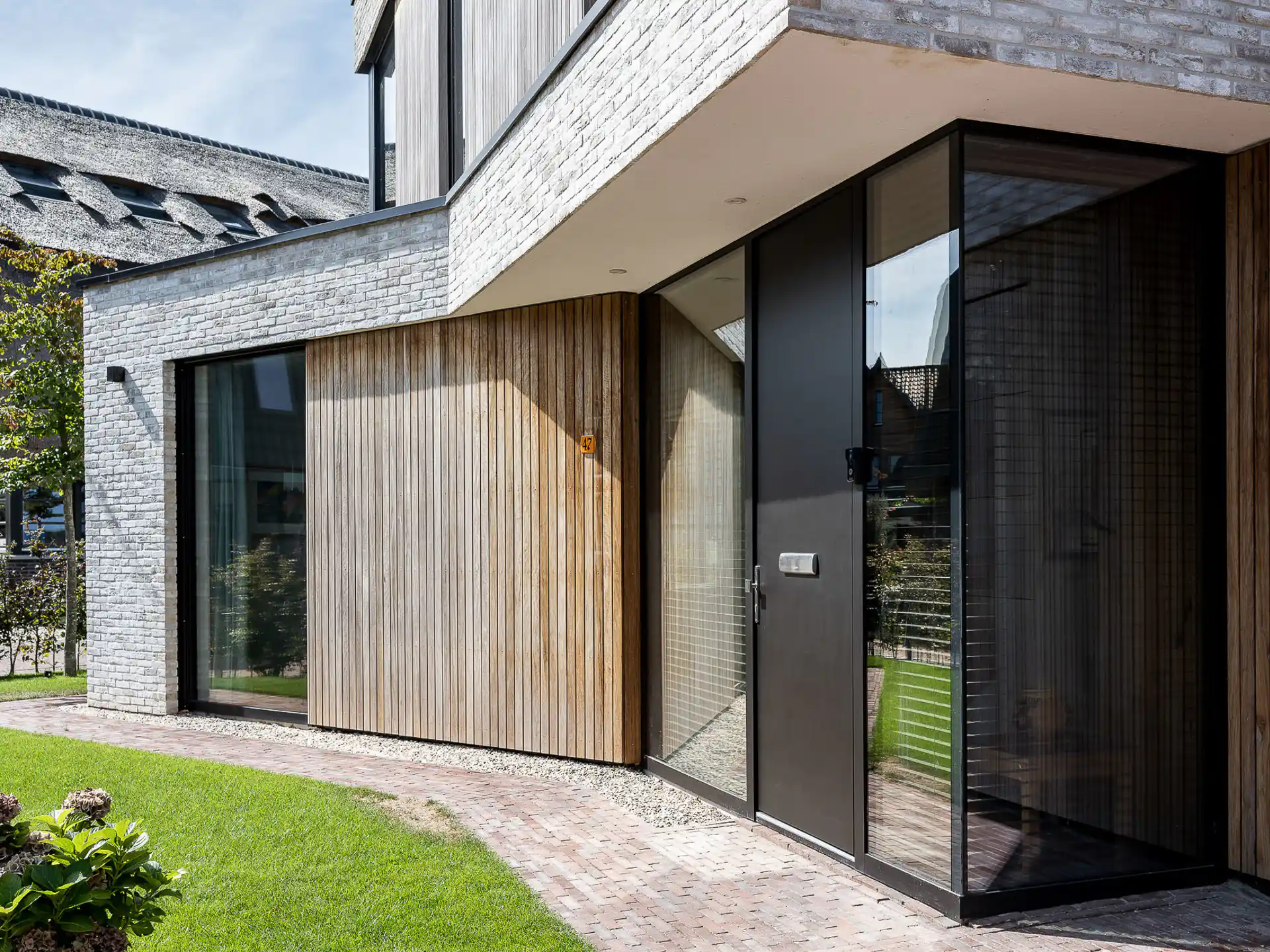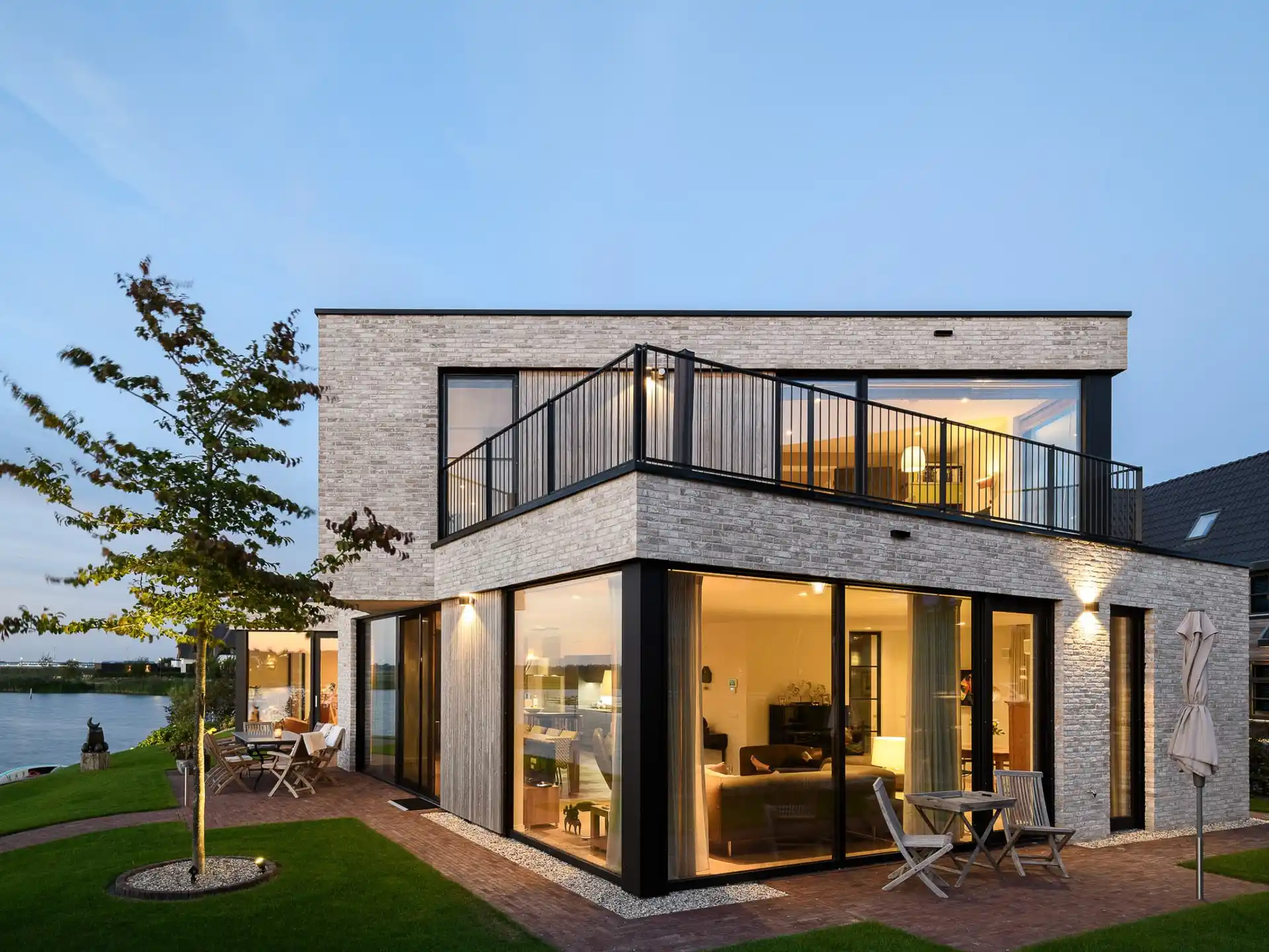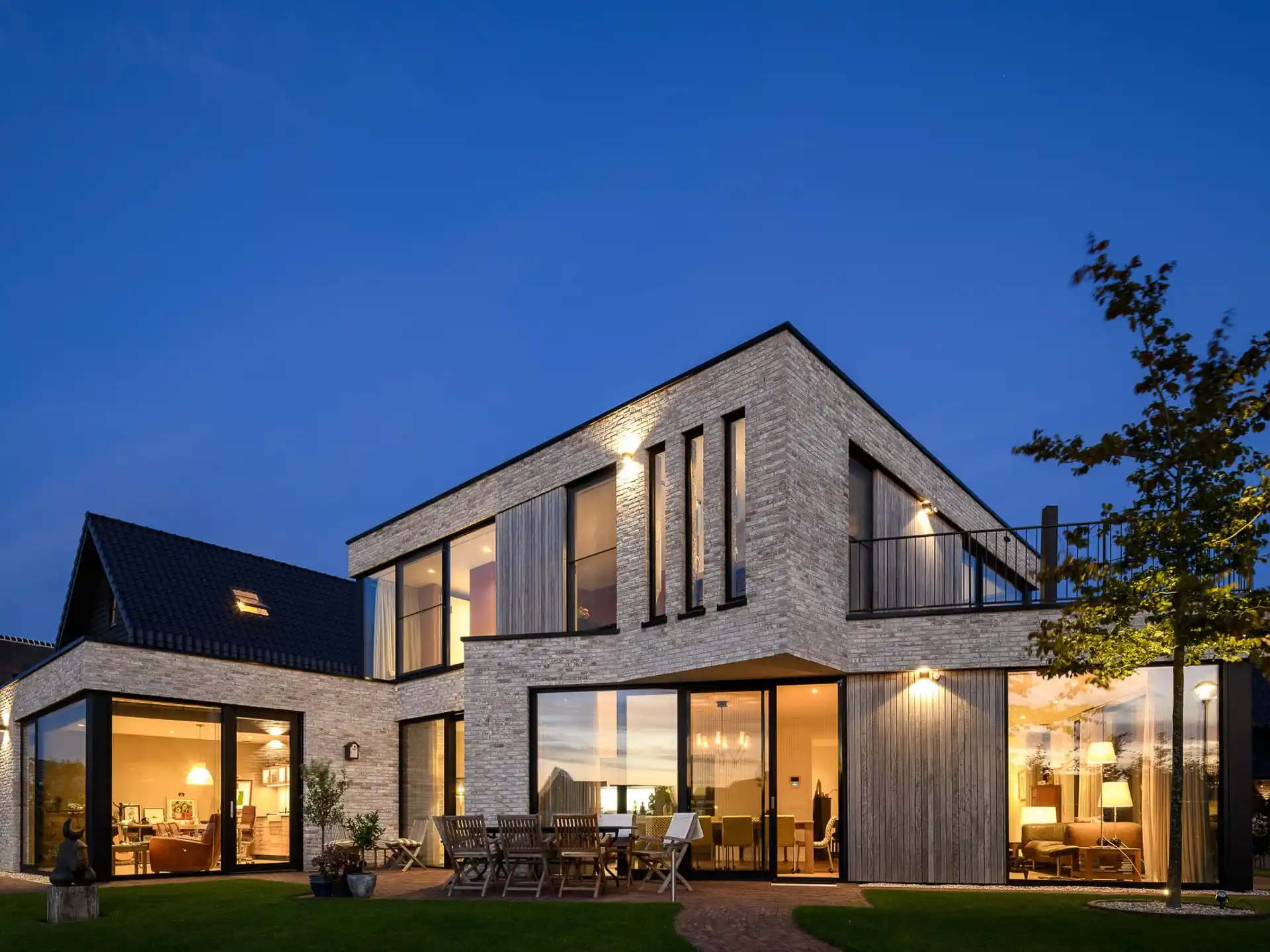 Deze Blaricumse villa is hét bewijs dat functie en ontwerp hand in hand gaan. De strakke gevelopeningen en drie elementen waar de woning uit bestaat zijn zo verwoven dat ze een sculptuur vormen. Het resultaat is een unieke woning die in verbinding staat met het water, en zich met zijn vorm losweekt van de standaard perceelgrenzen.