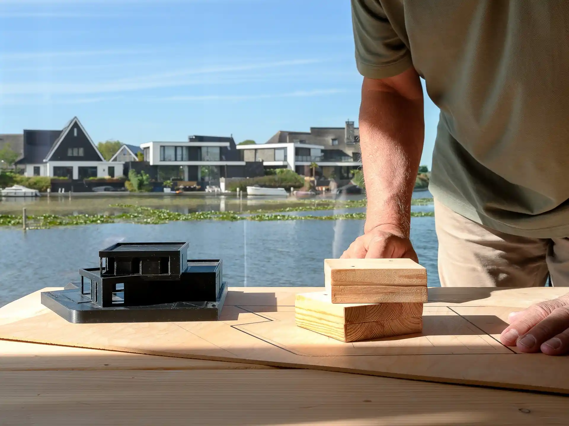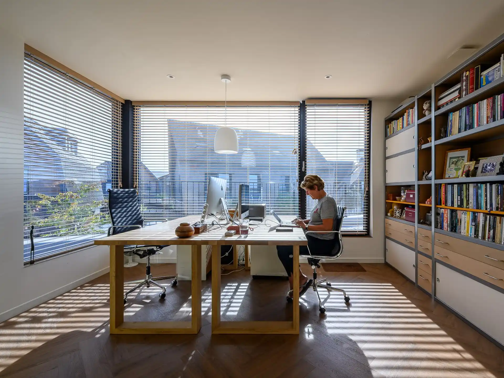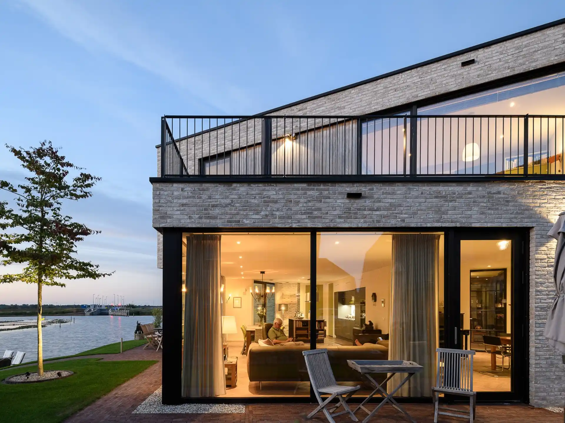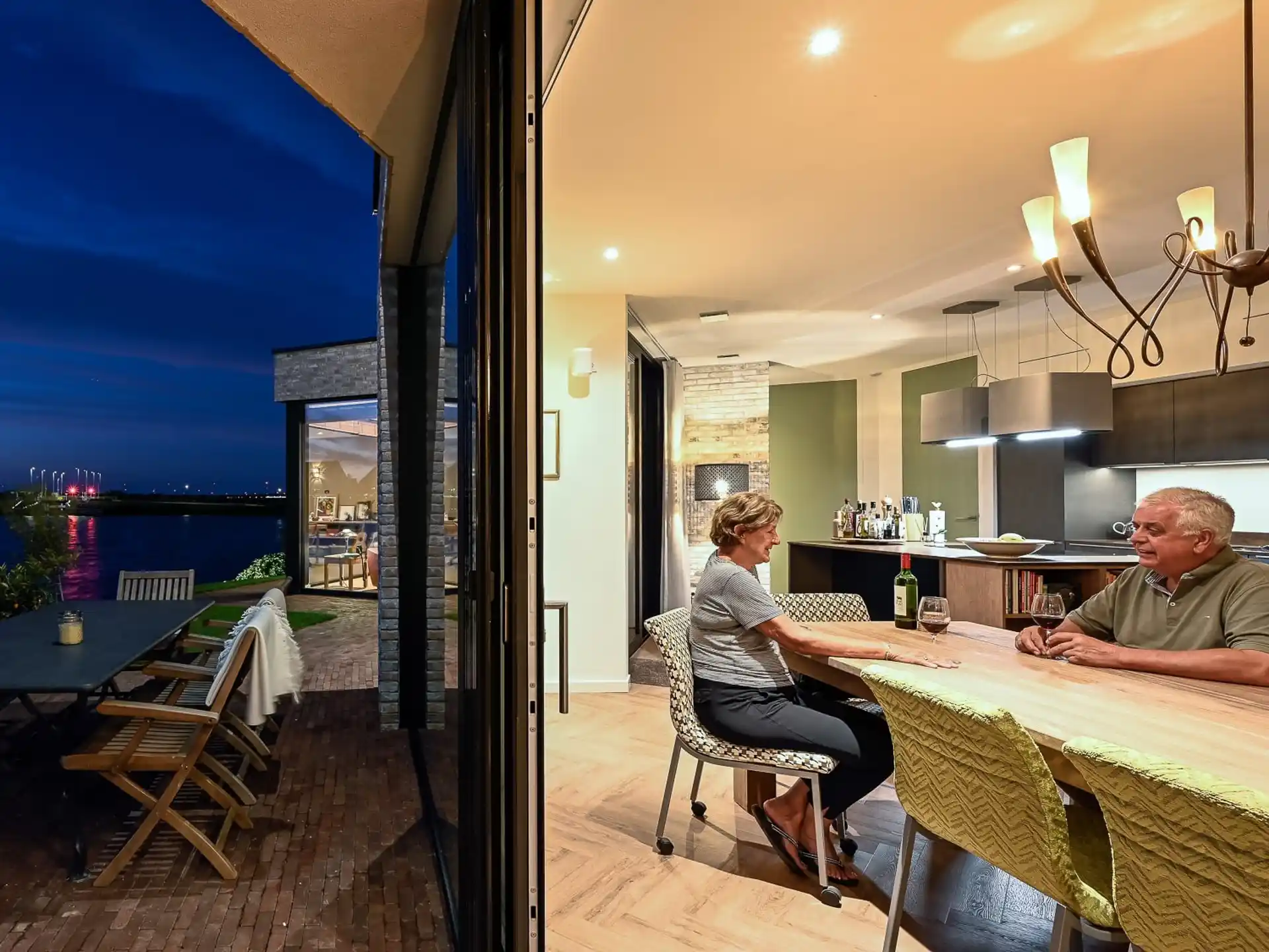 De atelierruimte aan het water, de ontbijttafel die ‘s ochtends overgoten wordt met zonlicht: alles draait om functie en beleving. Het zijn prettige binnen- en buitenruimtes, waarvan de ligging en vorm ervoor zorgen dat de ruimte optimaal gebruikt wordt.
