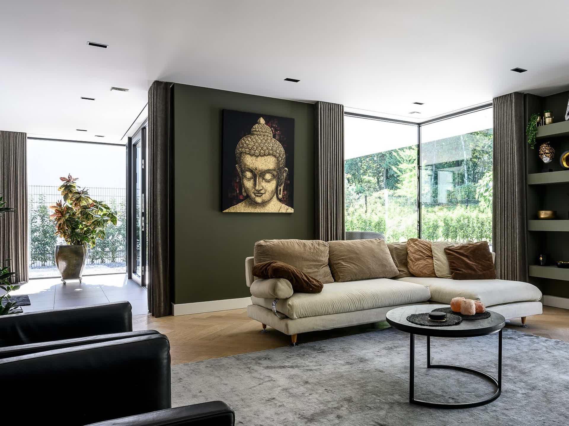 De looproutes, met vrij zicht door de woning heen, voelen natuurlijk aan. Altijd in verbinding met zowel de straat als de tuin. De verhouding open–privé is perfect in balans. Vanaf de leefkeuken word je begeleid naar de woonkamer – een eigen wereld.