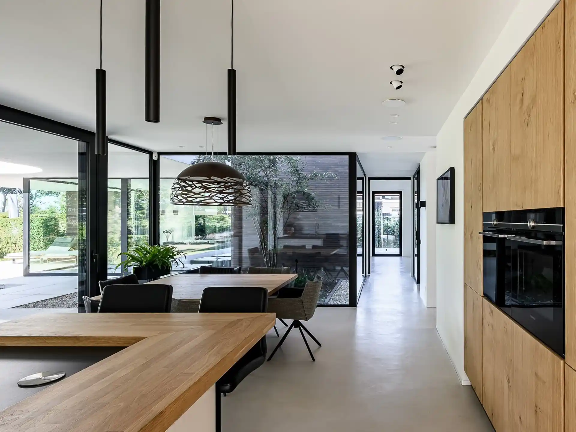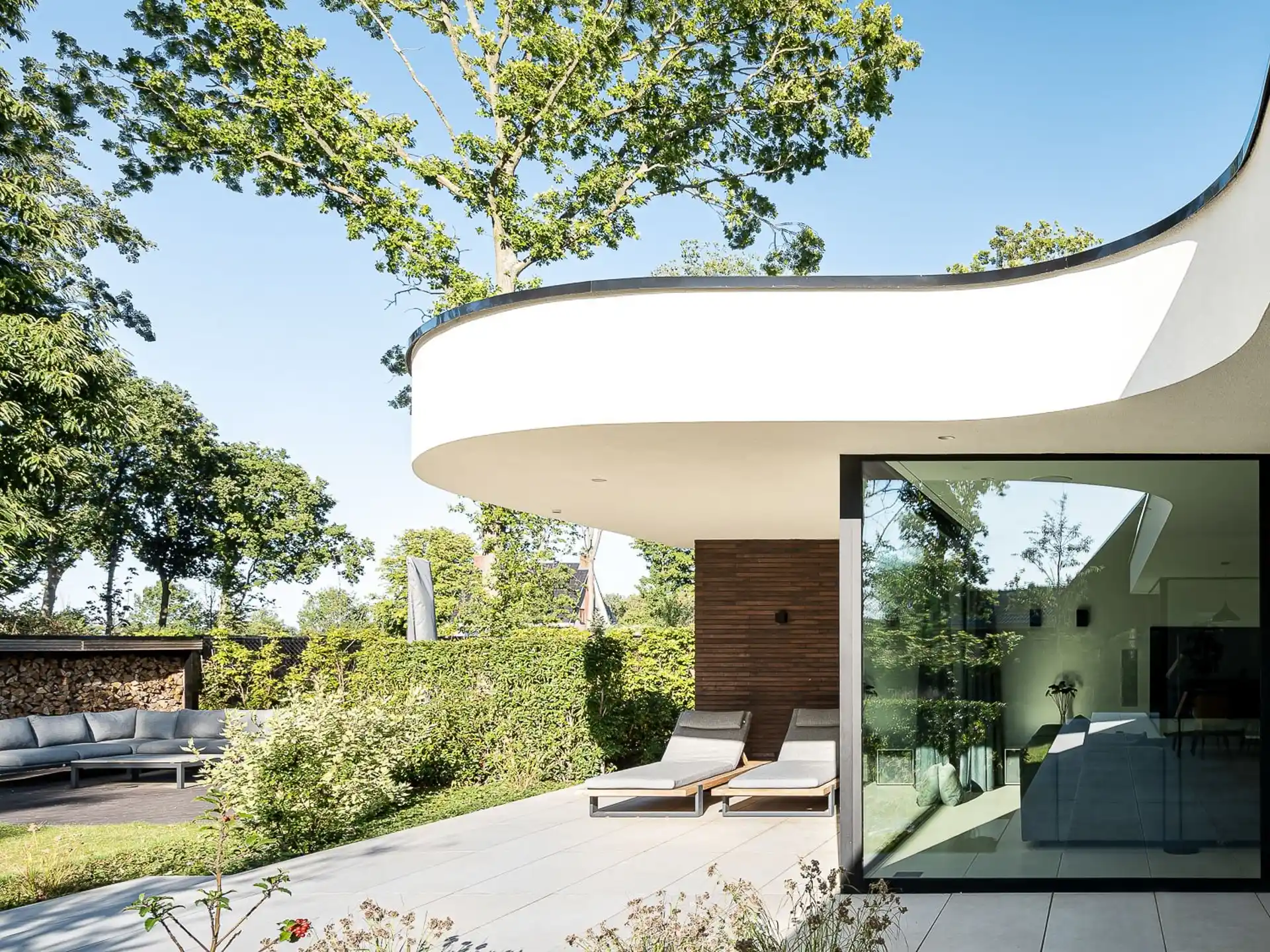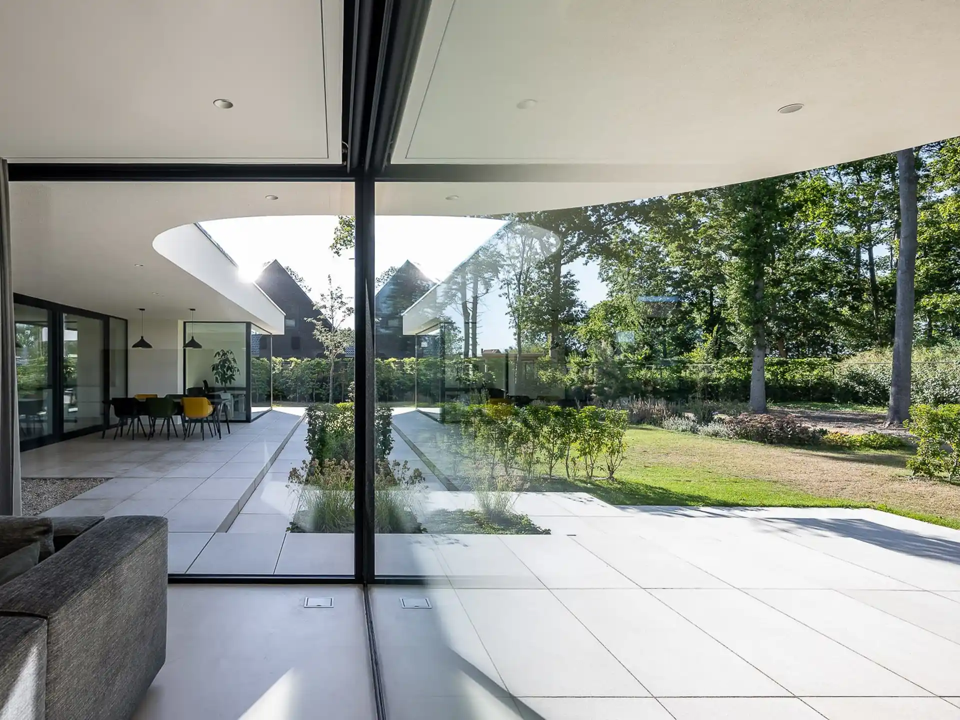 Een huis waarvan elke ruimte in contact staat met de tuin. Waar je ook bent, je voelt de verbinding met de natuurlijke omgeving. Een heerlijke plek om in een oase van rust de drukte van het dagelijks leven achter je te laten.