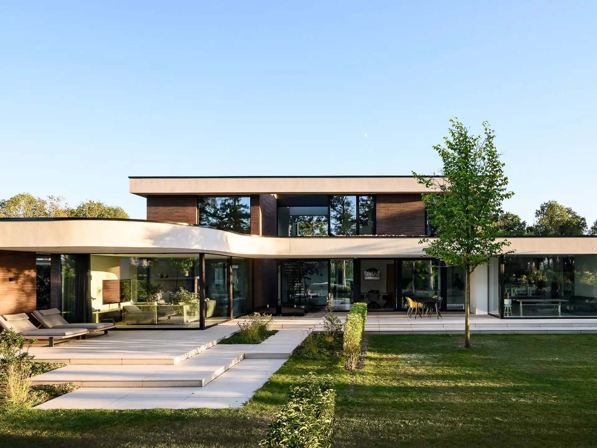 De luxe afwerking, moderne architectuur en grootse overkragingen maken het design van Villa Kouderkerke uniek. Een perfect samenspel van bouwkundige hoogstandjes en subtiele rondingen.